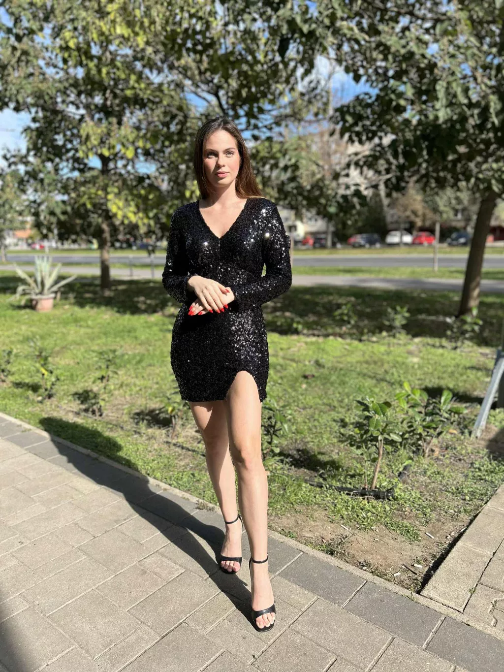 • Csillogó fekete színű flitteres ruha, van alatta pamut anyag bevarva ( nem szúr)