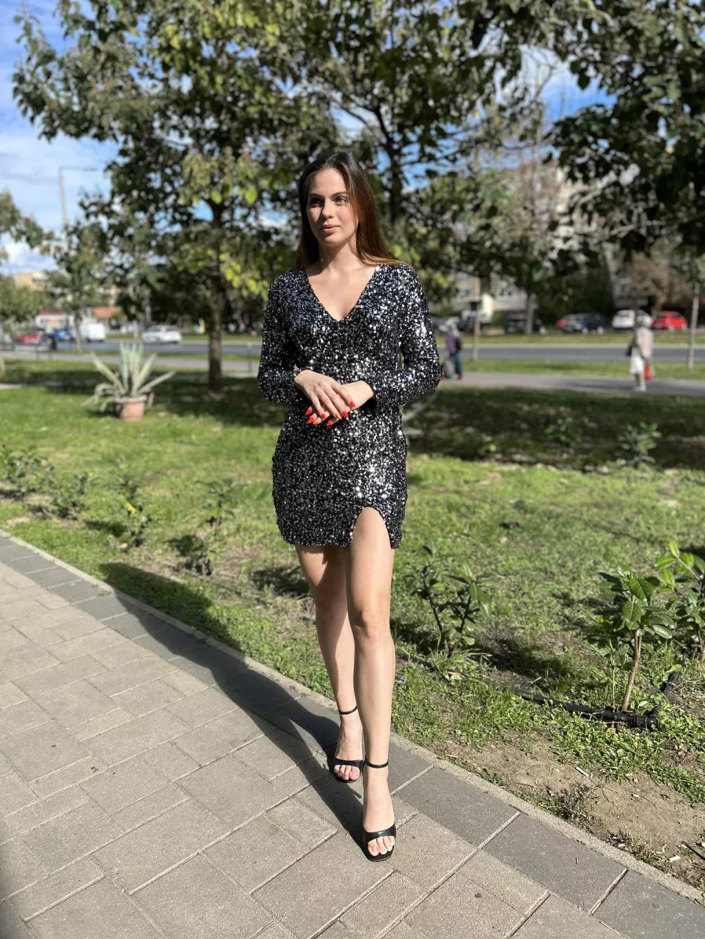 • Fekete színű ezüst flitteres ruha, van alatta pamut anyag bevarva ( nem szúr)