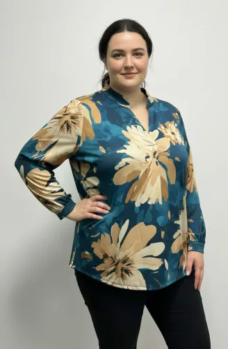 • Türkisz-barna-ekrü színű exkluzív egyedi mintás felső