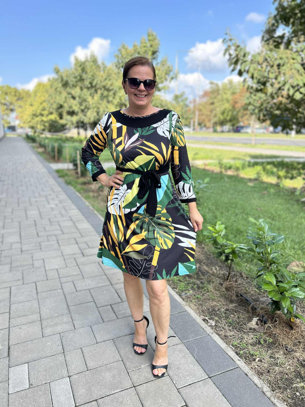 • Zöld-fekete színű, egyedi, levél mintás ruha
