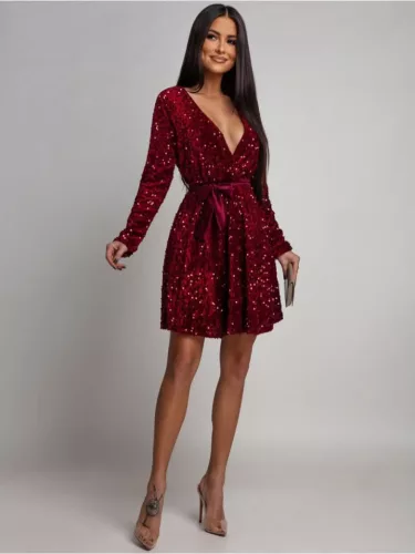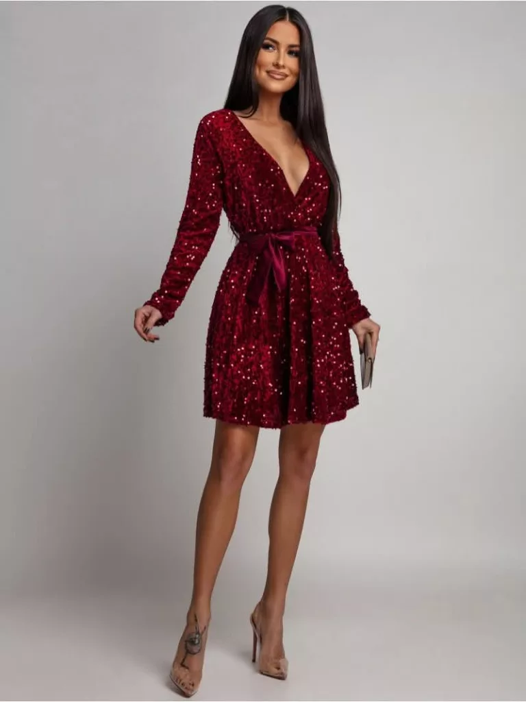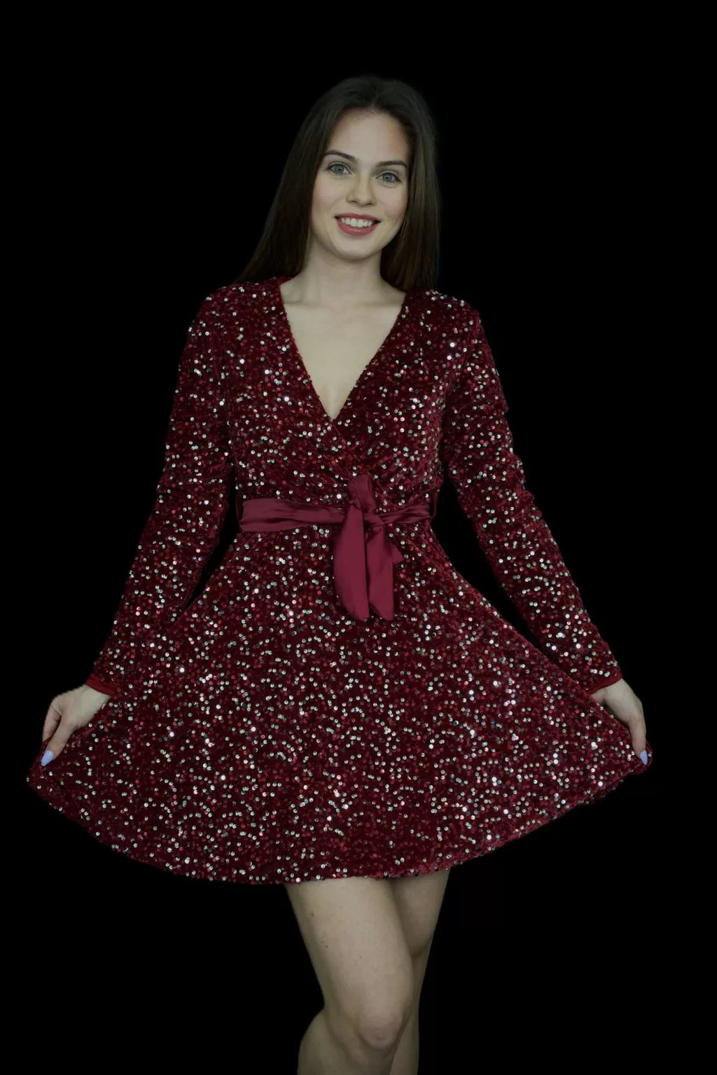 • Csillogó burgundi színű flitteres ruha, van alatta plüss anyag bevarva ( nem szúr)