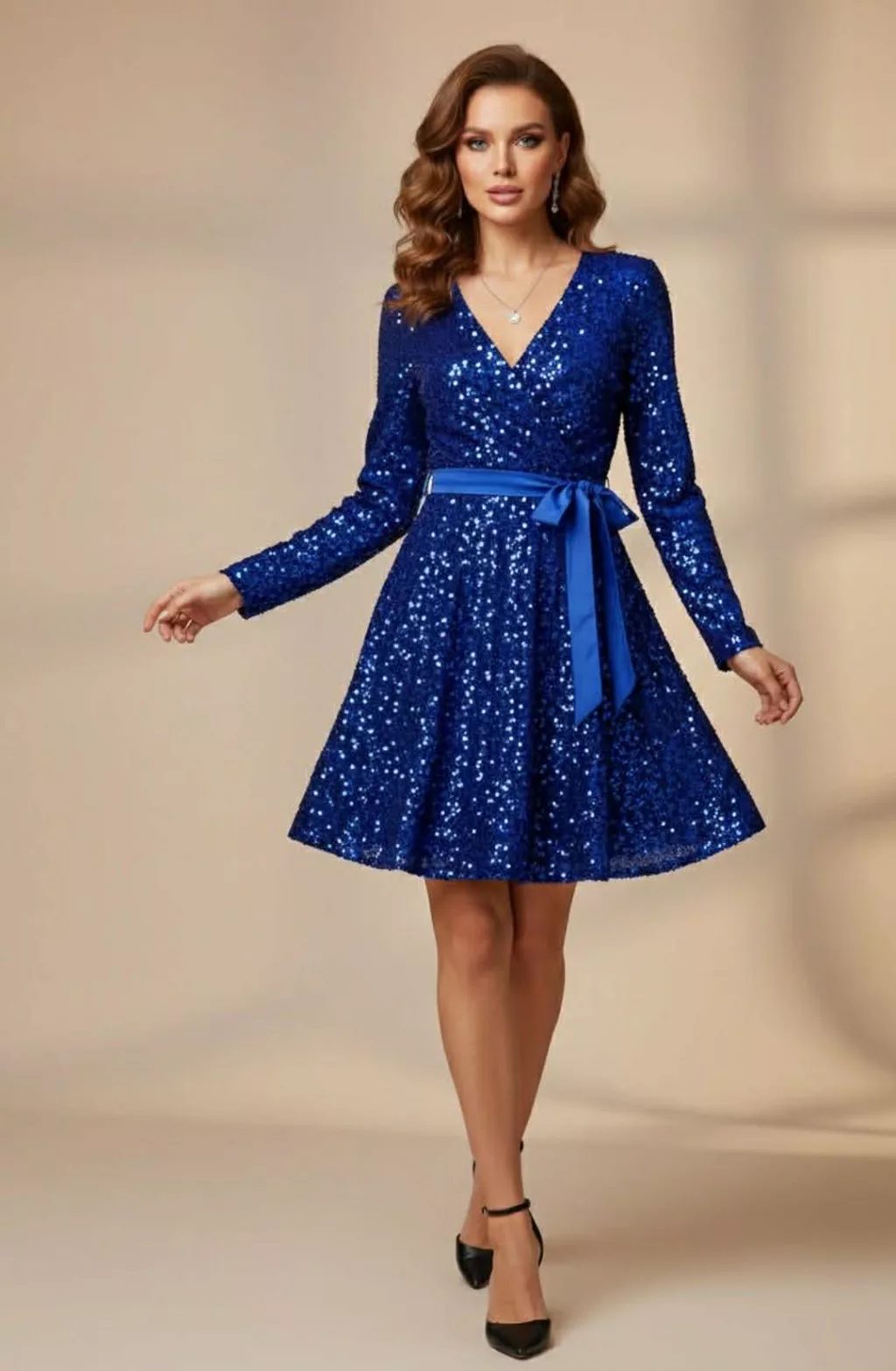 • Csillogó királykék színű flitteres ruha, van alatta plüss anyag bevarva ( nem szúr)