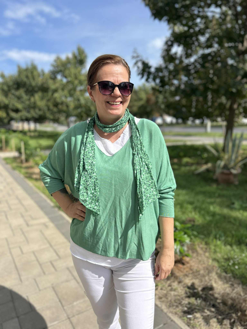 • 2 részes, a felső alatt van egy  fehér trikó, a sál ajándék